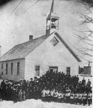 On fit une souscription qui rapporta $614.29 dans le but de bâtir une bâtisse qui servirait à la fois de chapelle et d'école dans le village. Un terrain mesurant 140 x 200 pieds a été donné par M. Hormidas Pilon. Les travaux de cette construction furent confiés à M. J. Quenneville. Commencée dans les premiers jours du mois d'août 1906, la bâtisse fut terminée juste à temps pour l'ouverture de la classe le 15 septembre 1906 avec Mlle Prégent comme institutrice. La bâtisse a coûté $1,305.50 . Elle mesurait 65 x 30 pieds. La nef séparée du sanctuaire par un rideau servit d'école paroissiale durant six ans jusqu'à l'arrivée du curé Bouchard en 1912 qui fit construire la première école.